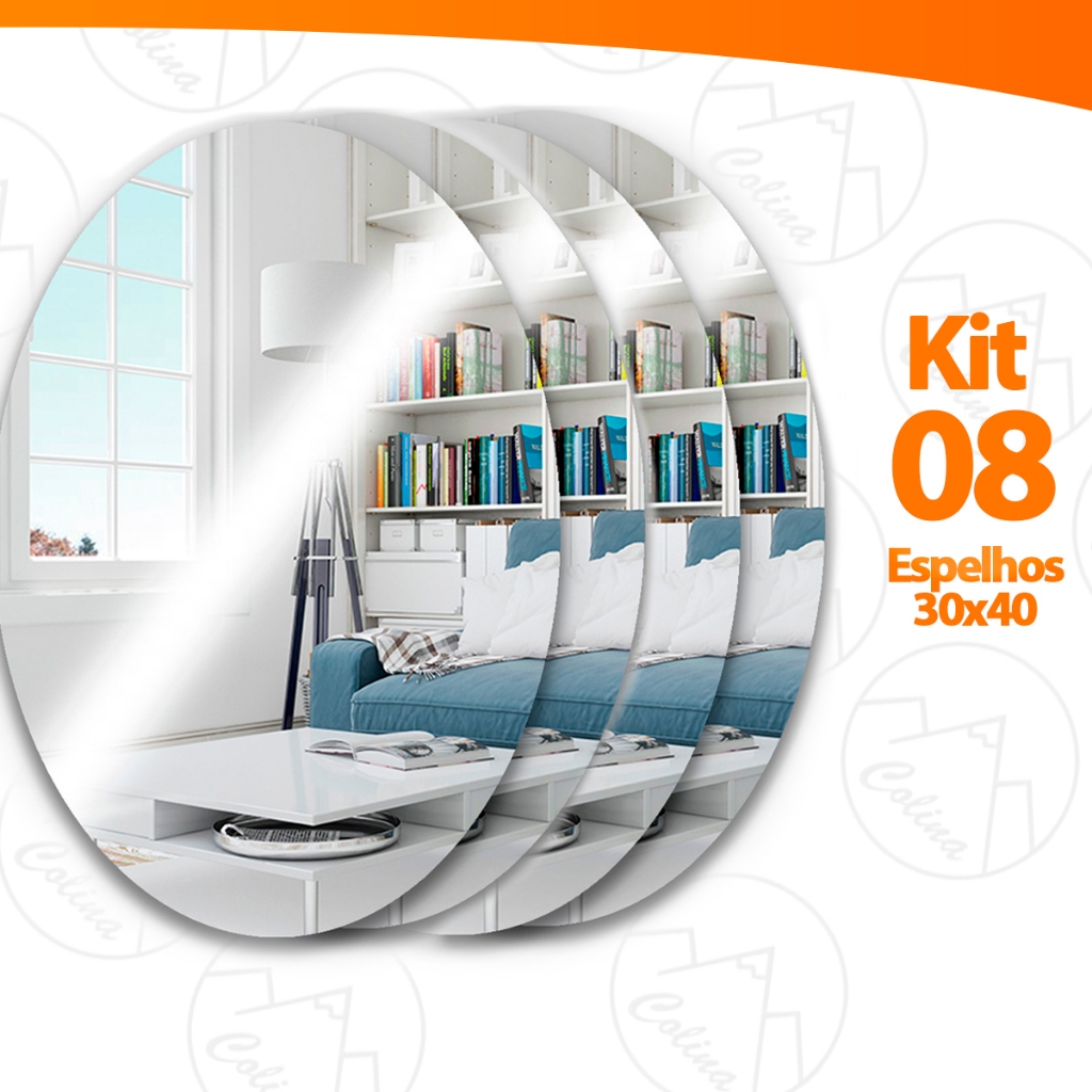 Kit 8x Espelho Placa Adesivo 30x40 Oval Acrílico Decorativo Sala Banheiro