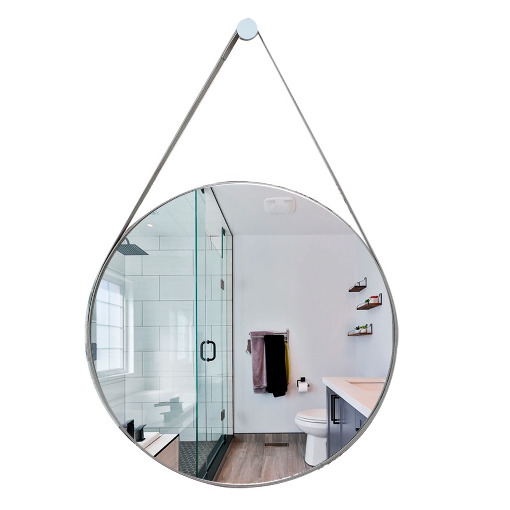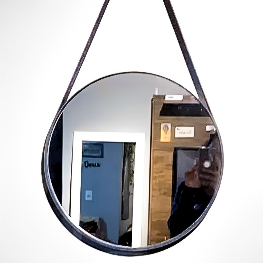 Espelho Decorativo 45cm Suspenso Redondo Adnet Vidro c/ Alça Suporte Pendurador Moderno p/ Decoração Parede Casa Banheiro Sala