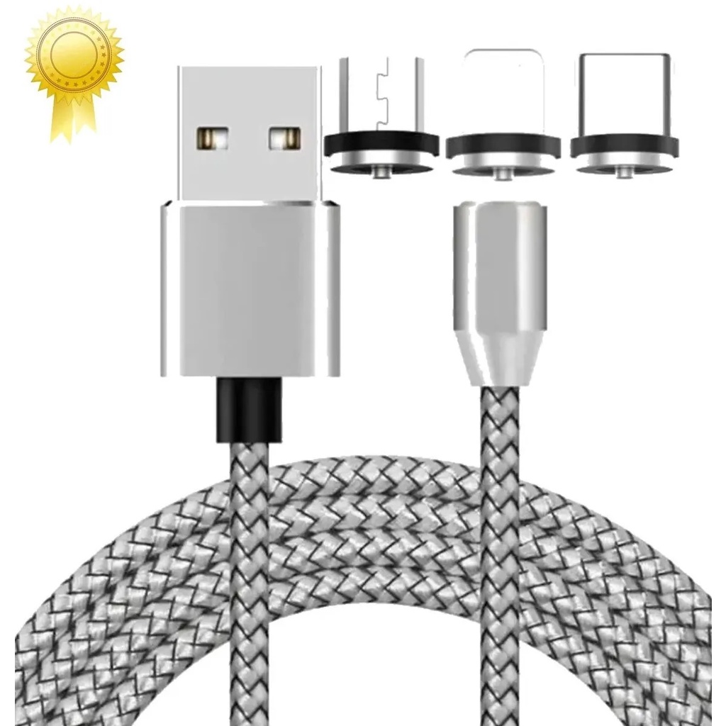 Cabo Magnético Carregador Micro Usb Tipo C Lightining 2 Metros para Iphone Motorola Samsung 3 Pinos