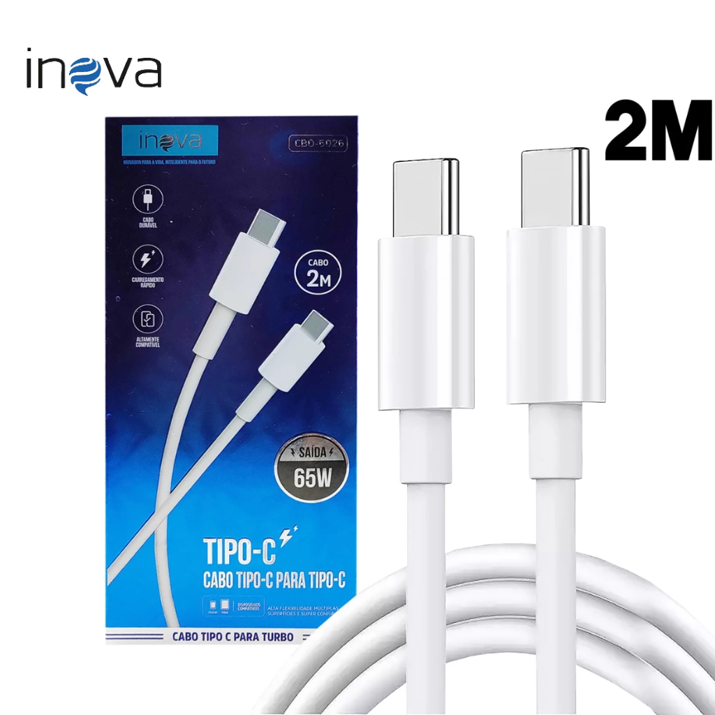 Cabo carregador tipo C para Android 65W de carregamento rápido 2 metros USB-C Inova 100% original
