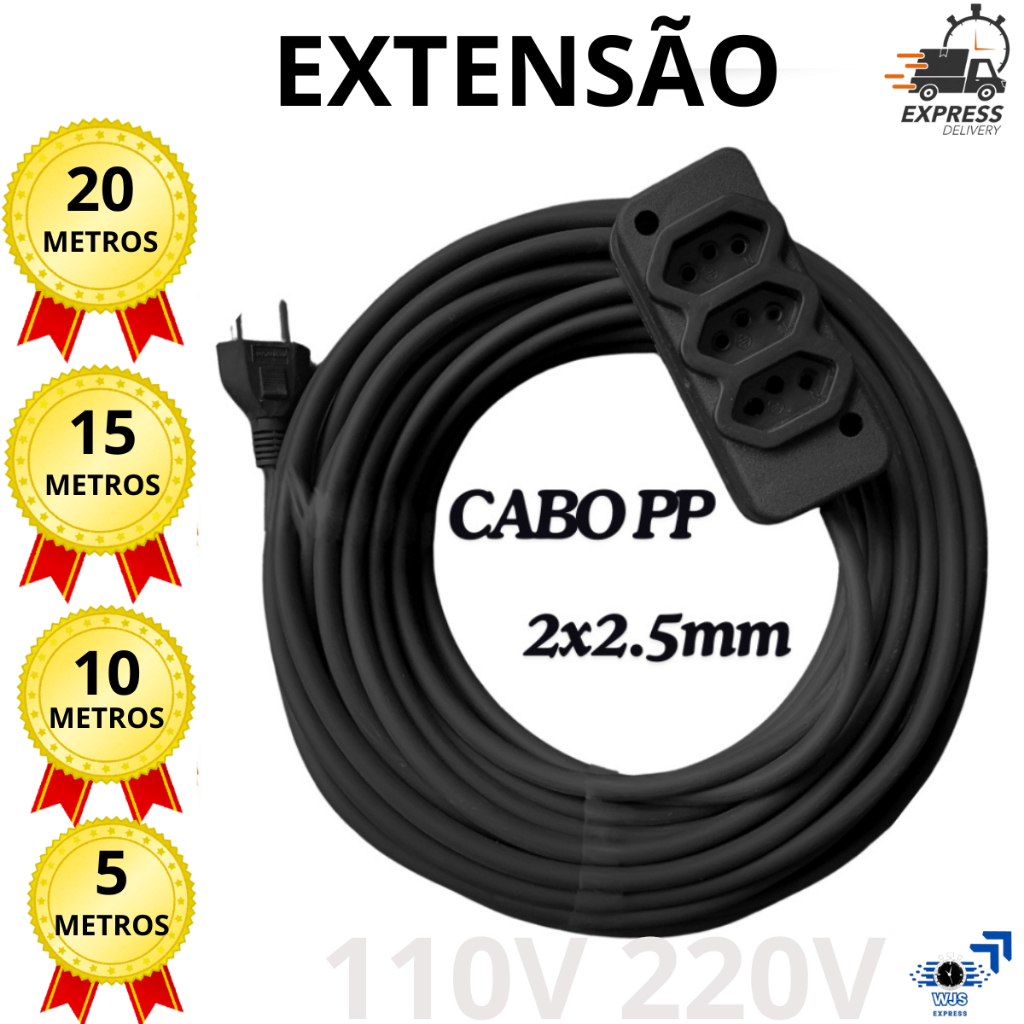 Extensão Elétrica 10 Metros e 25 Metros Com Cabo PP 2x2,5mm Padrão Novo / Antigo Plug 10a