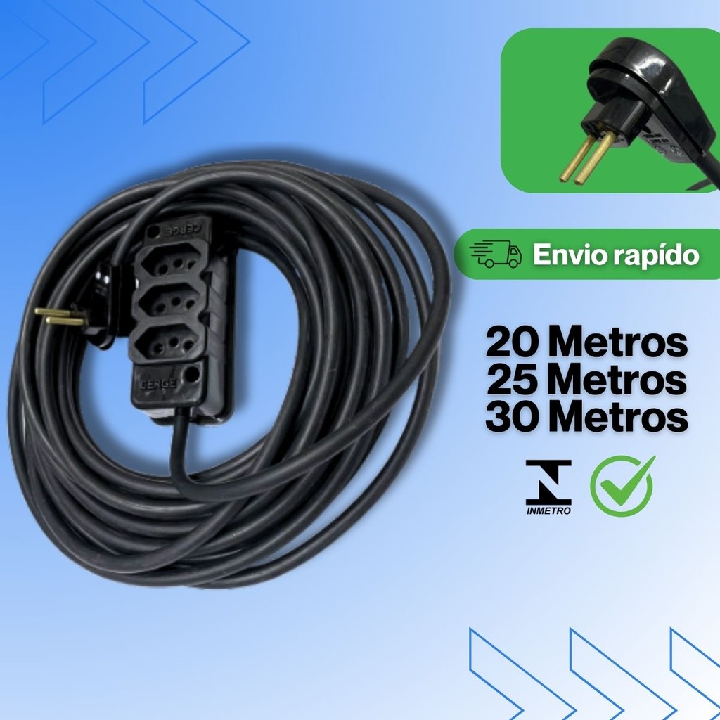 Extensão Cabo Grosso PP 20,25 e 30 Metros Prolongadora 10A e 20A Elétrica 2x2.5MM Reforçada