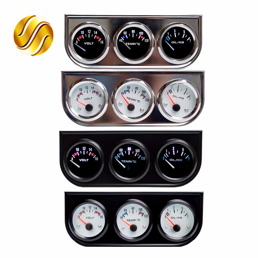 Medidor Triplo De Dragão Para Carro 52mm / Medidor De Temperatura Da Água (Celsius) / Prens De Óleo Preto / Cromado 3 Em 1 Kit Medidor
