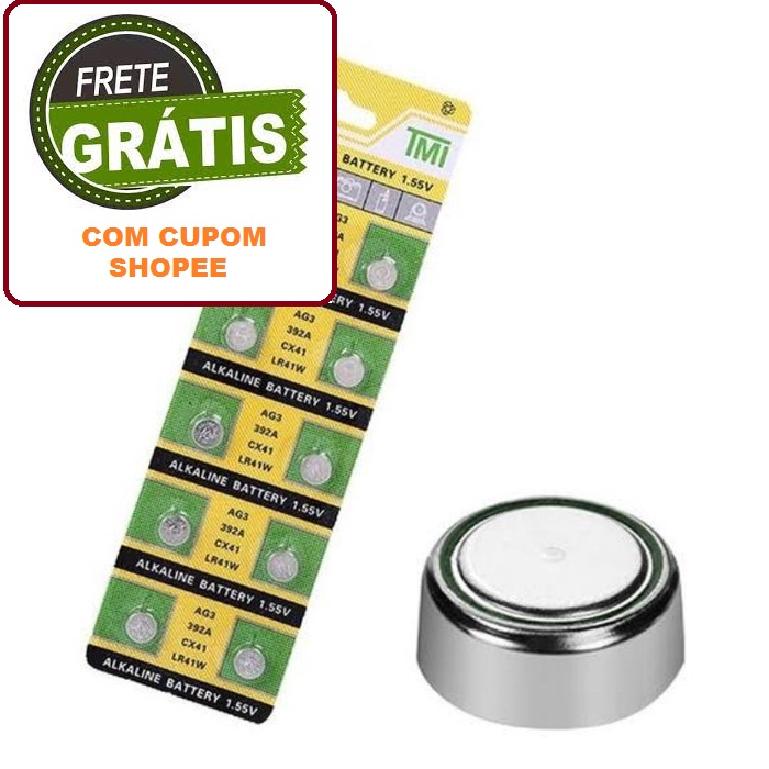 Kit com 10 Baterias Pilhas TMI Alkaline LR41 Para Termômetro Digital G-Tech Lcd