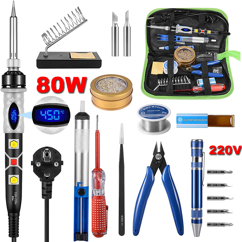 80 W Display Digital LCD Temperatura Ajustável 220 V Ue Kit De Reparação De Solda Elétrica Ferro