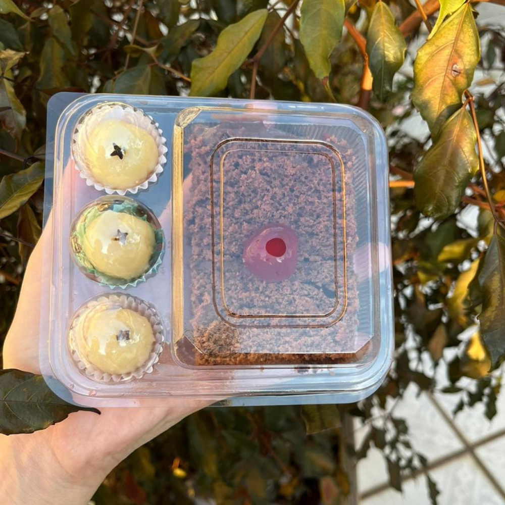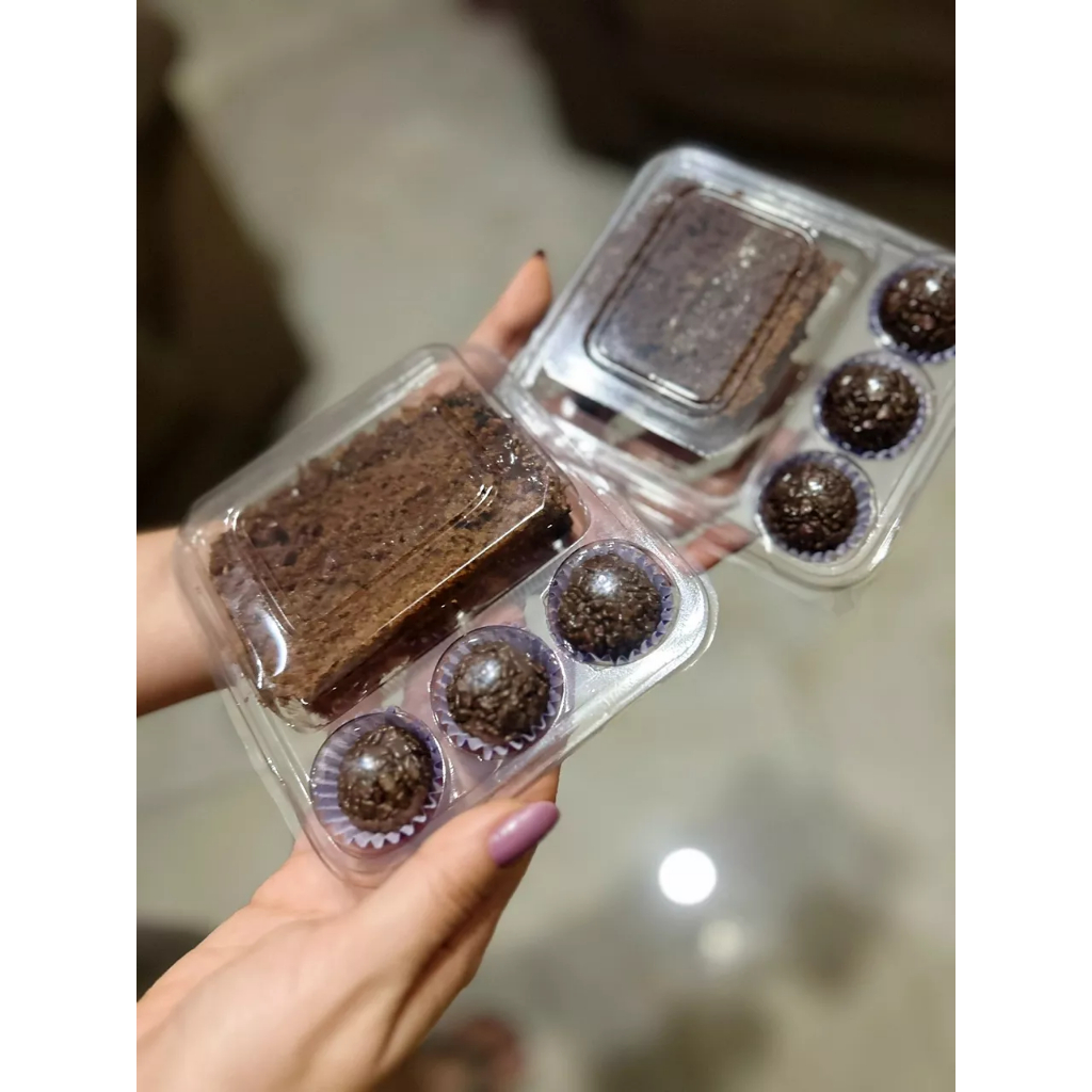 LANÇAMENTO! Embalagem Delícias de Festa para Fatia de Torta/Bolo e 3 Docinhos - 25 unidades