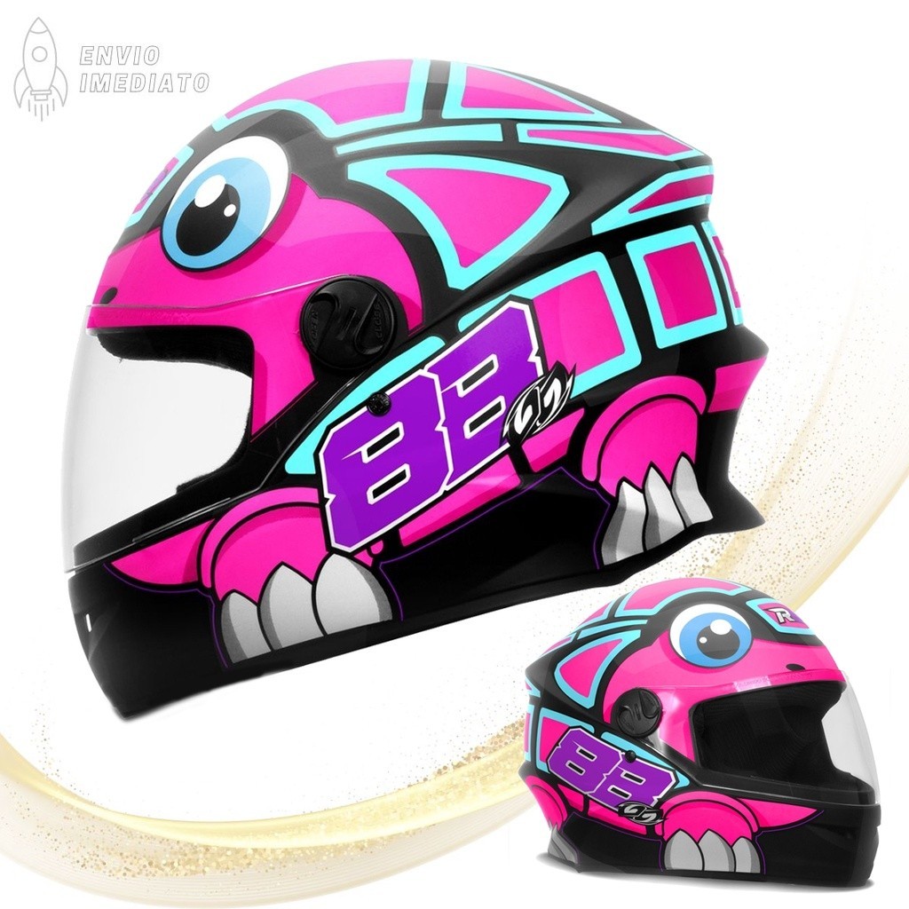 Capacete Fechado Pro Tork R8 Turtle Tartaruga Brilhante Rosa e Verde Moto Motoqueiro