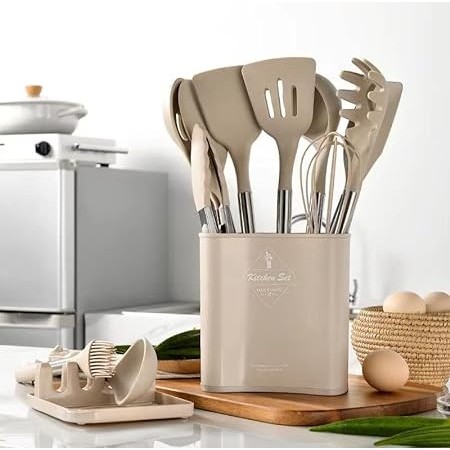 Jogo Kit C/13 Peças Utensílios De Cozinha Silicone Cabo em Aço Inox Completo