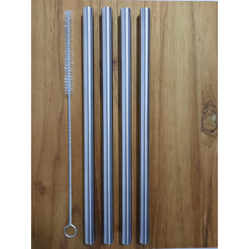 kit 5 pçs com 4 pçs Canudo de aço inox para milkshake reutilizável sustentável + 1 Escova de limpeza