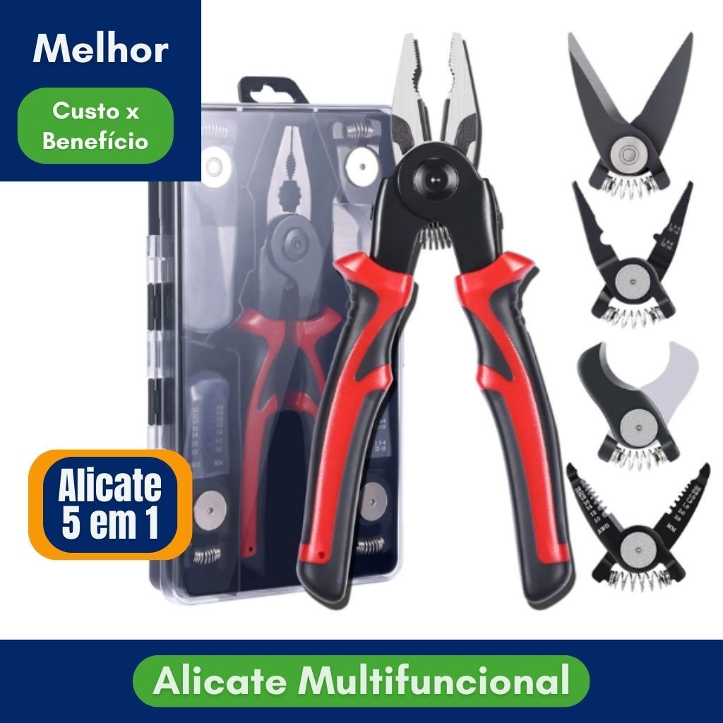 Alicate 5 Em 1 Multifuncional Kit Ferramenta Com 5 Bicos Ergonômico Isolamento Emborrachado Engate Especial Universal Arame Cortador Crimpador Decapador Corte Fios Podagem Tesoura de Corte