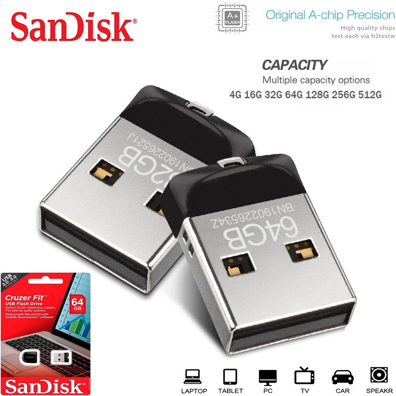 Cruzer Fit Mini De Alta Qualidade 16GB 32GB 64GB 128GB 256GB 512GB Unidade Flash USB 2.0 Pandrive U Disco