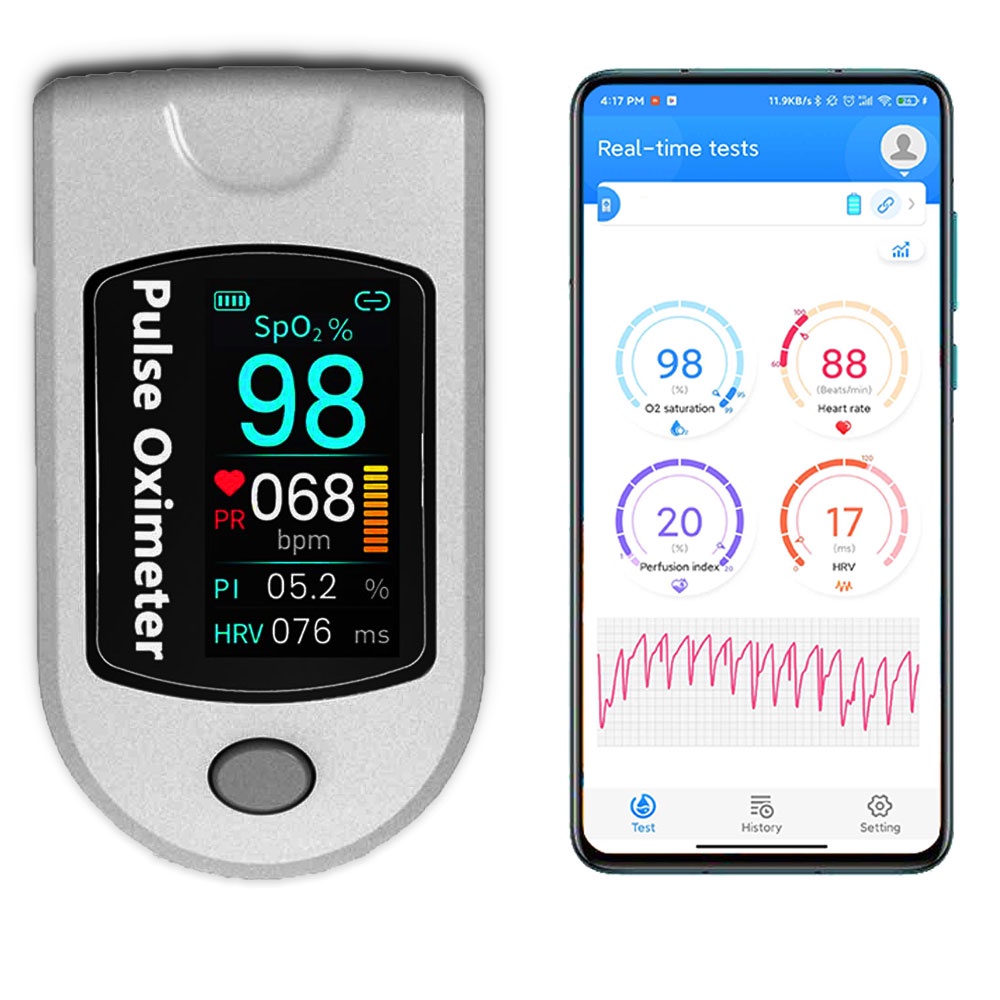 Oxímetro de dedo Pulso Sem Fio Bluetooth 4.0 Spo2 PR Oxigênio No Sangue Monitor de Freqüência Cardíaca Óximatro Desedo Cuidados de Saúde