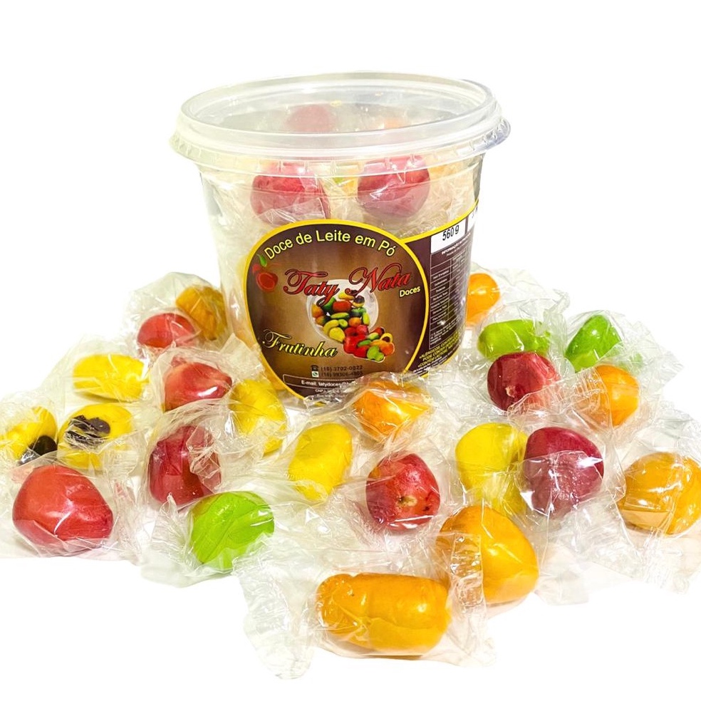 Doce frutinhas de leite ninho pote com 30 unidades variadas para revenda festas e eventos