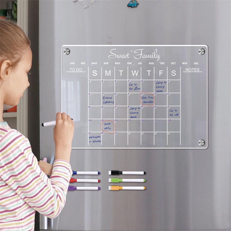 Calendário Acrílico Imã Semana Magnético Frigorífico Quadro De Avisos De Transparente Home Decor Apagamento A Seco
