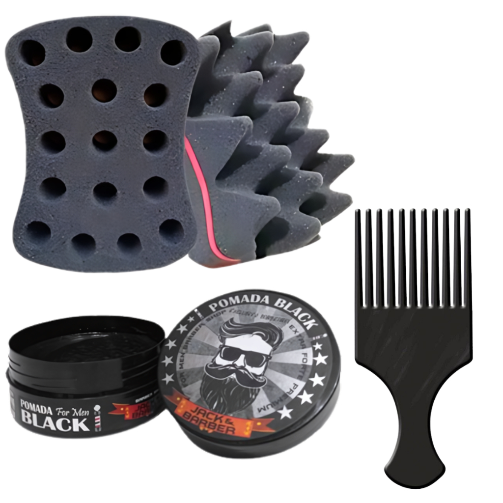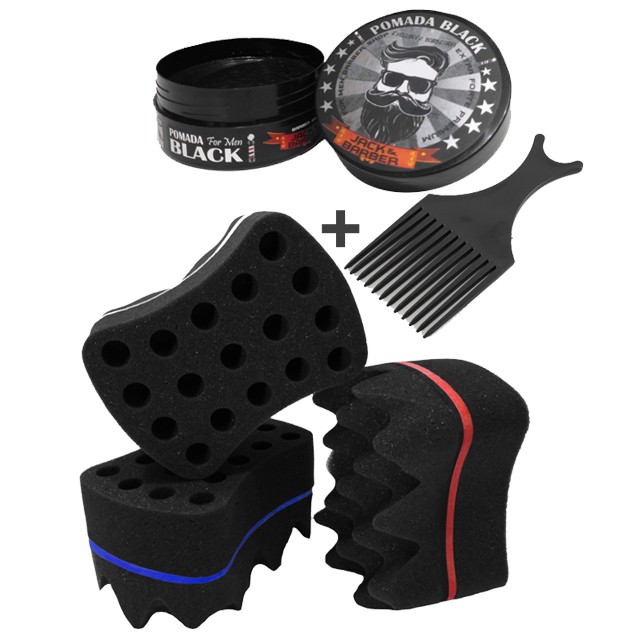 Esponja Nudred Dupla Enrolar Cabelos Média 16mm + cera modeladora + Pente Afro