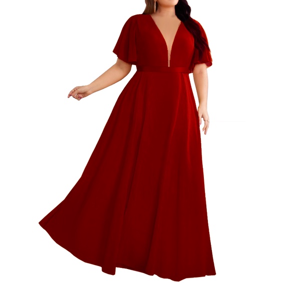 Yunire - Vestido de Festa Plus Size Longo Iris Tule Invisível Yunire Marsala