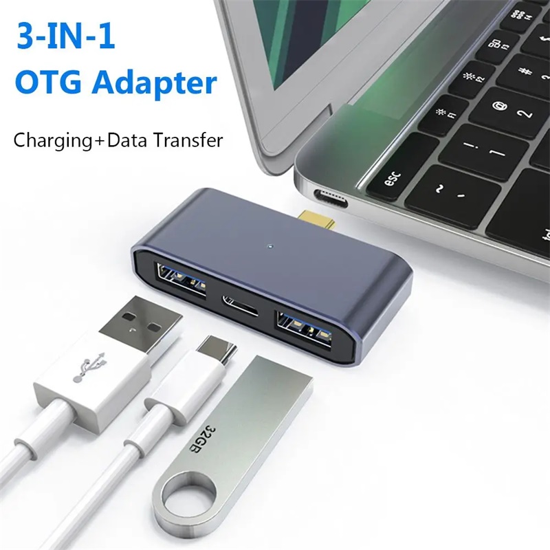 Adaptador 3 Em 1 Tipo C OTG Fonte De Alimentação PD Cabo De Carregamento Rápido USB 3.0 Conversor De Disco U Externo Divisor Para Telefone Móvel Laptop