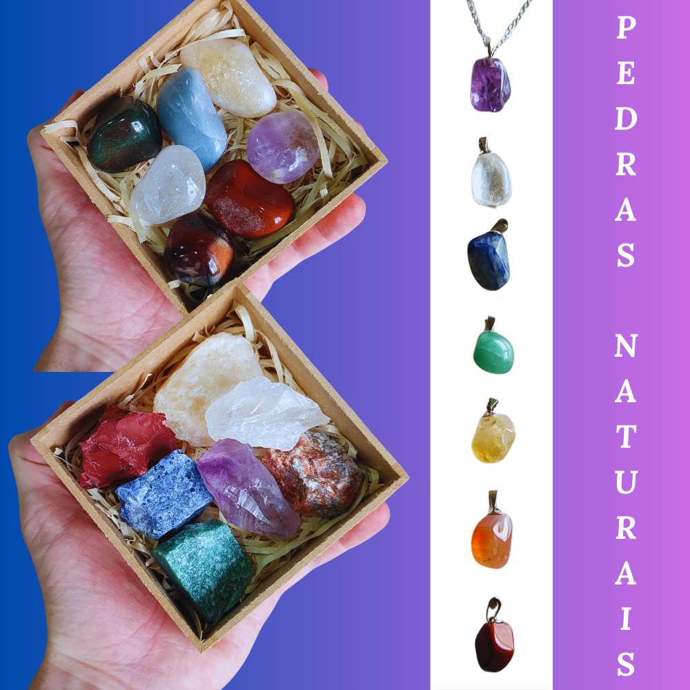 Kit 7 Pingentes dos Chakras + 7 Pedras dos Chakras (Grandes ou de Bolso) | Pedras Naturais