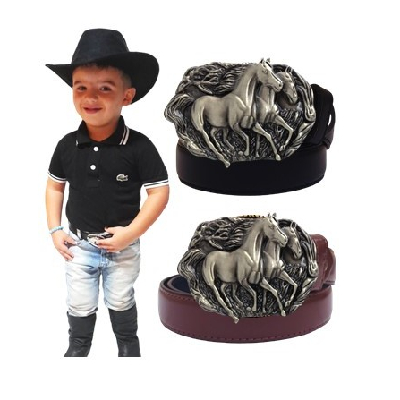 Cinto Fivela Country Menino Cowboy Infantil Bebê Rodeio festa junina São João Unissex CAVALINHO PRATA E DOURADO
