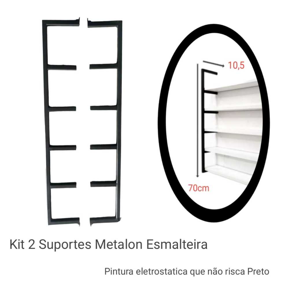 Kit 2 Suporte Nicho Organizador Estilo Industrial Esmalte Preto Para Prateleira D/E 70x10