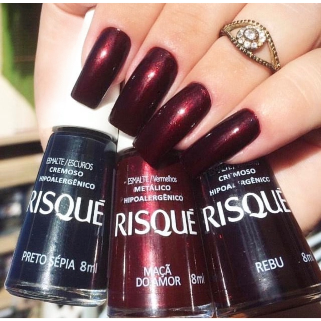 Kit 3 Esmalte Risqué , Preto Sépia , Maçã do Amor e Rebu