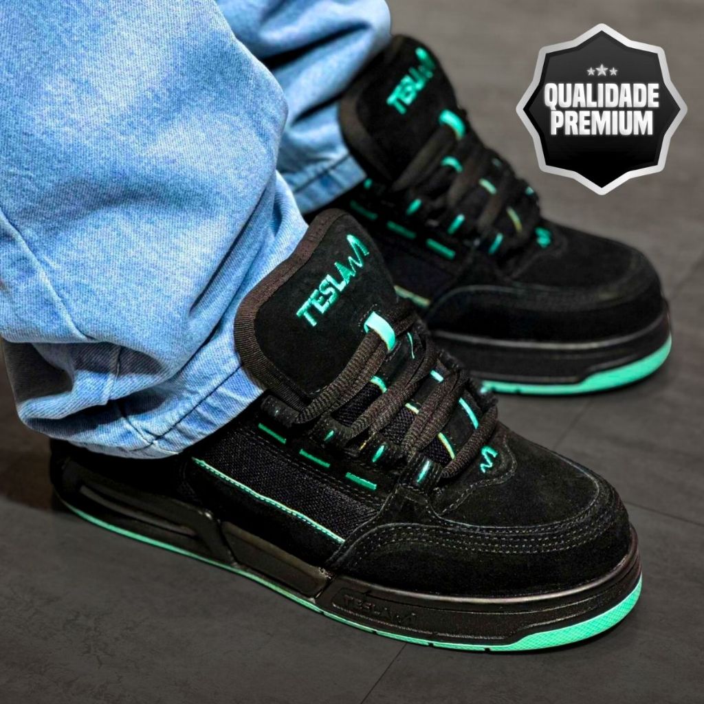 tênis tesla preto unissex masculino feminino casual, esportivo, skatista confortável, linha premium 34 ao 43