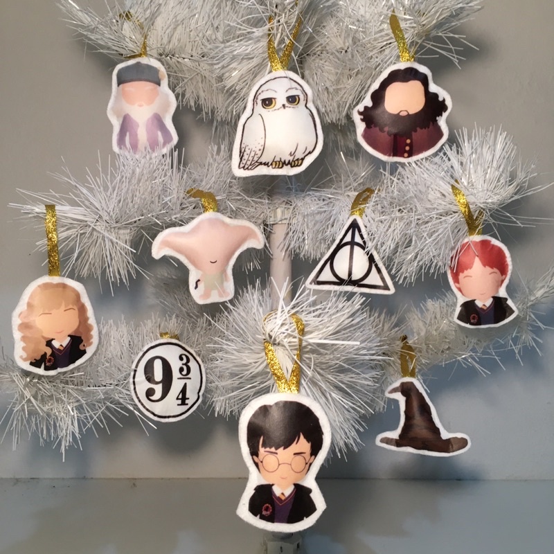 Kit com 6 enfeites para árvore de Natal tema Harry Potter