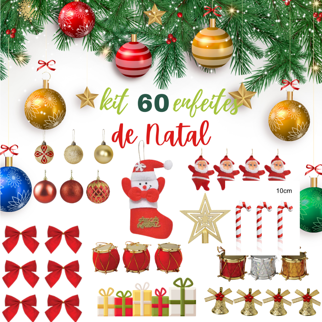 Kit Com 120 Enfeites Natalinos Para Árvore de Natal Bolinhas Presentes Anjo Pinha Festão