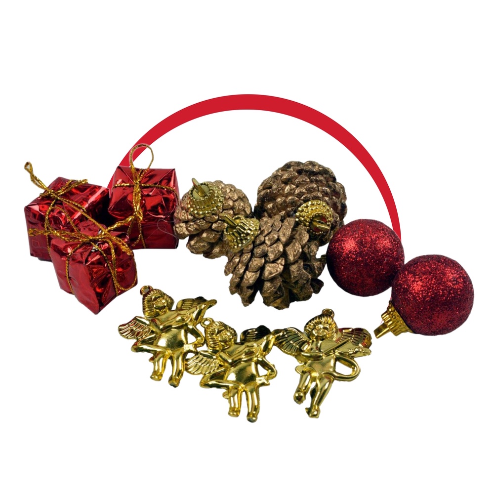 Kit com 12 Enfeites Sortidos Para Arvore de Natal Pinha Anjo
