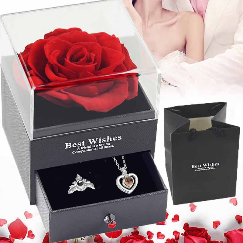 Colar Feminino De Luxo Com Caixa De Flores Artificial Quatro Folhas Pingente Para Namorada Esposa Presente Do Dia Dos Namorados