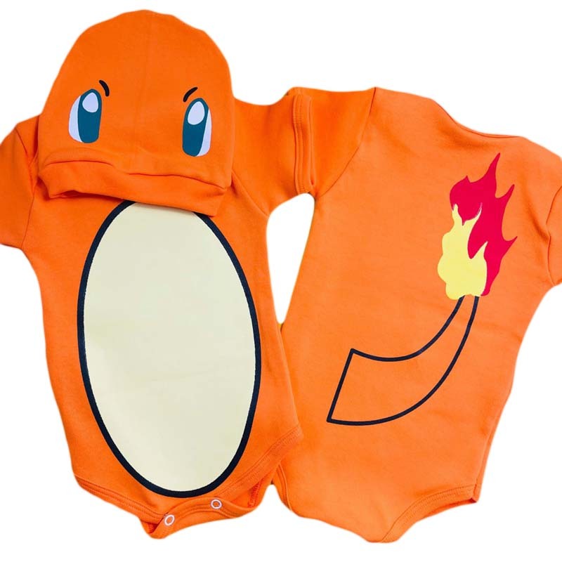 Body Bebê Temático Mesversário Fantasia Pokemon Charmander Com Touquinha