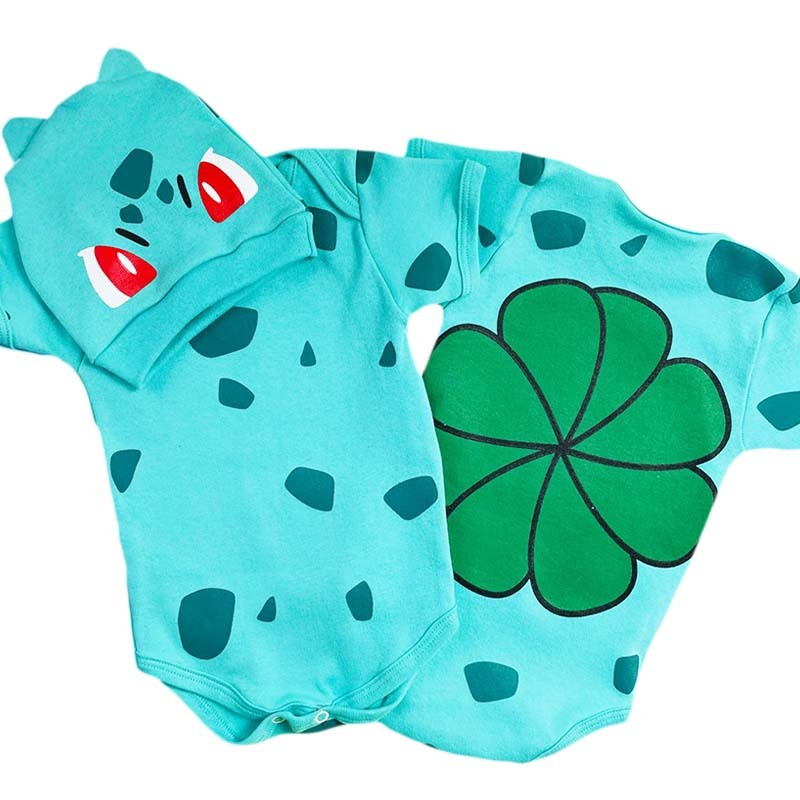 Body Bebê Temático Mesversário Fantasia Pokemon Bulbassauro Bulbasaur Com Touquinha