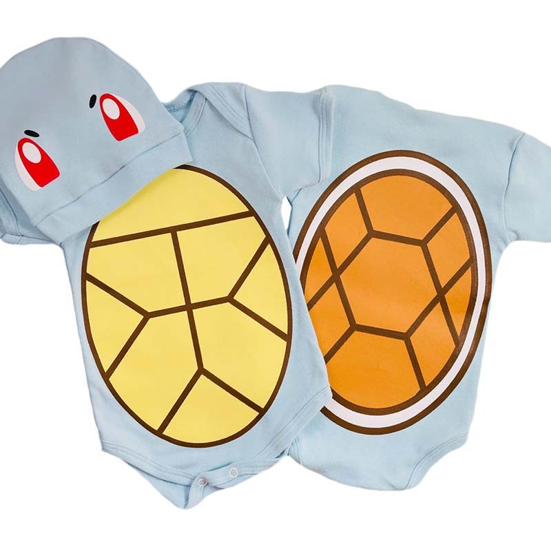 Body Bebê Temático Mesversário Fantasia Pokemon Squirtle Com Touquinha