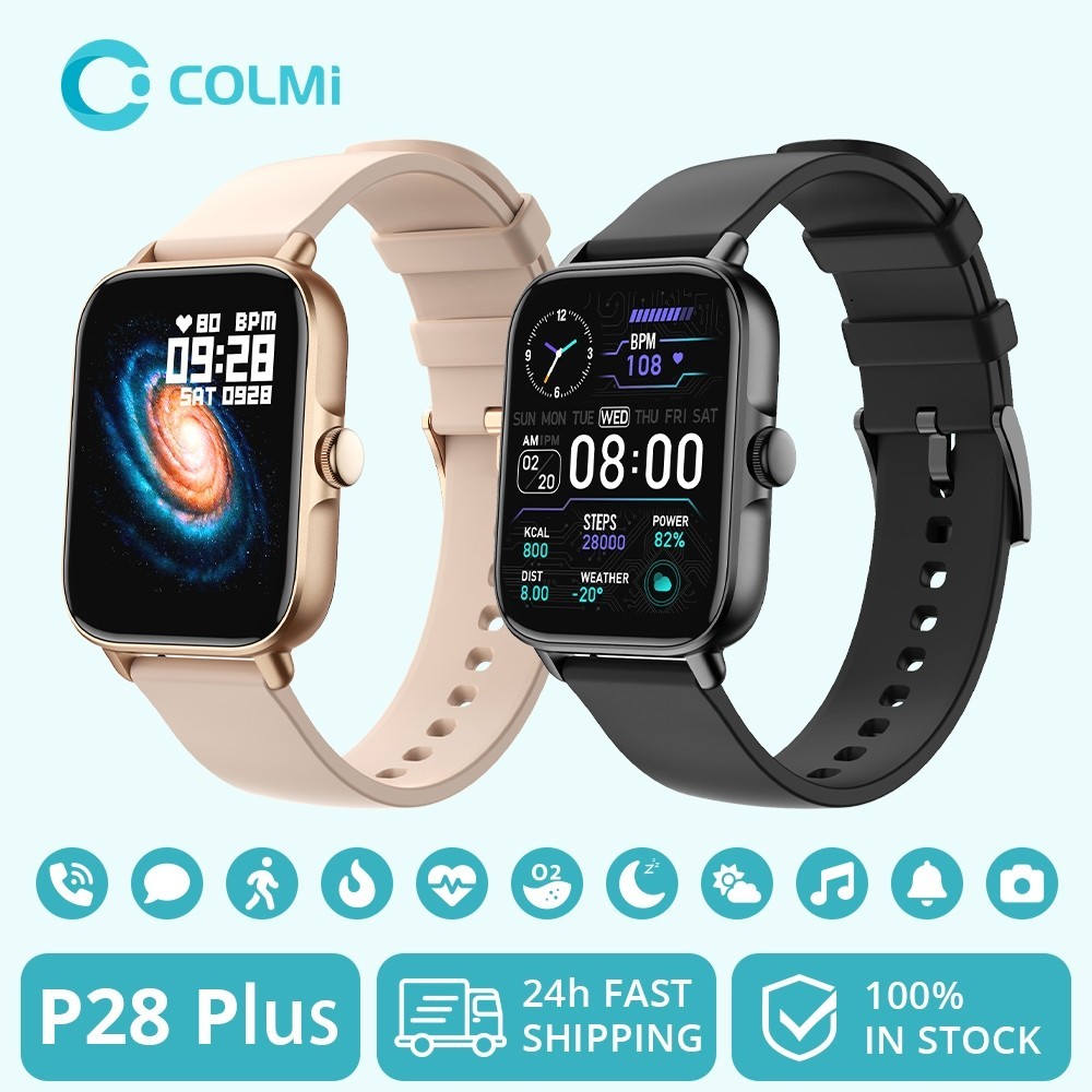 COLMI P28 Plus Smart Watch IP67 Monitoramento Da Pressão Arterial À Prova D'água Frequência Cardíaca De Oxigênio Sangue Bluetooth Chamada De Correia De Silicone 20MM