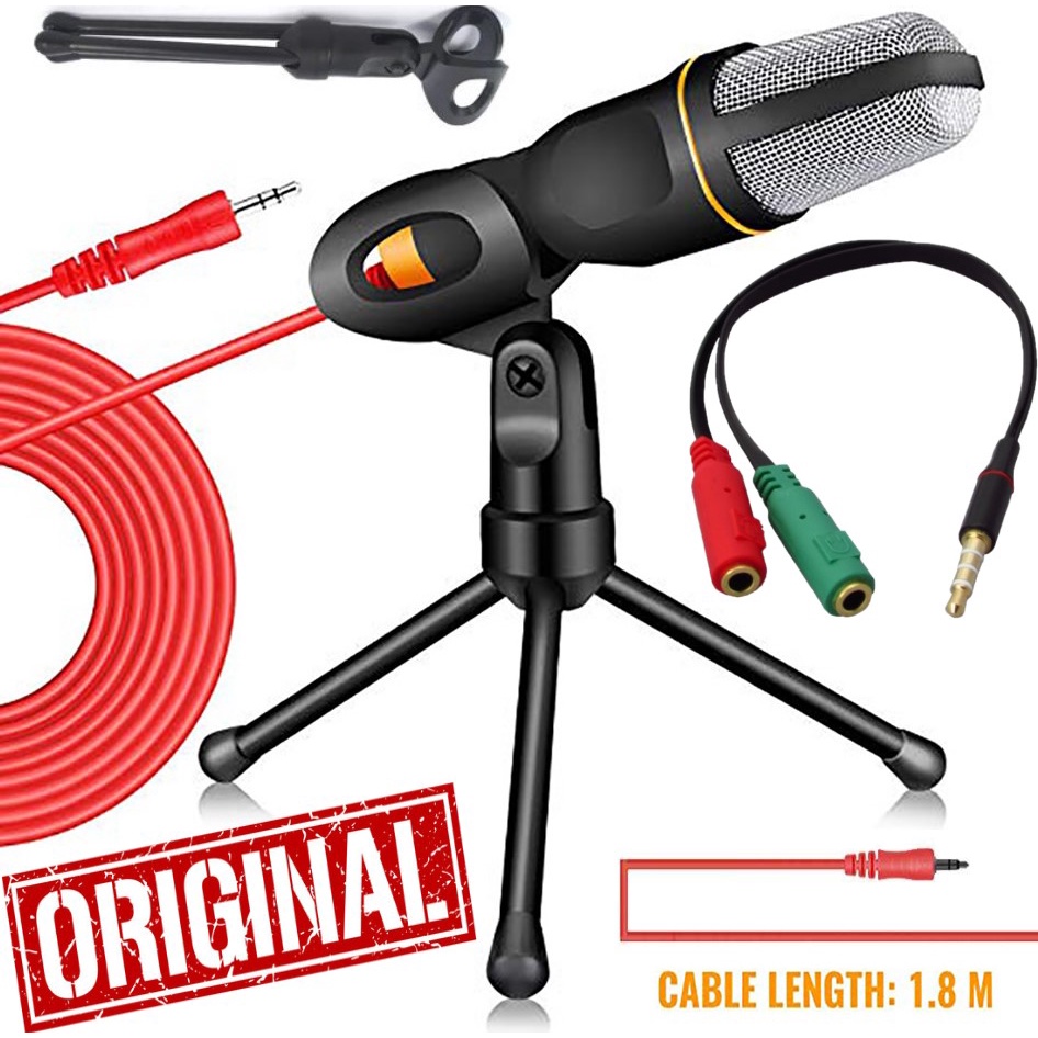 Microfone Condensador de Mesa Profissional Omnidirecional P2 Com Tripé Para Celular Computador PC Youtuber Gravação de Vídeos Universal