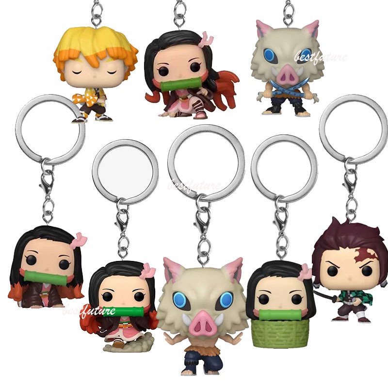 Funko Pop Keychain Demon Slayer Nezuko Zenitsu Tanjiro Inosuke Chaveiro De Ação Figura Decoração Ornamentos