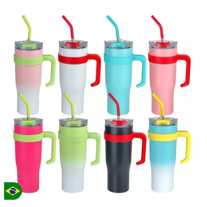 Caneca Térmica com Canudo e Alça 1.2 Litros Copo Para Viagem Térmico Aço Inox Cerveja Refrigerante Água Chá Café
