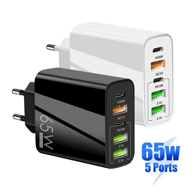 Carregador De Parede USB Multi-Portas De 65W Para Telefone Celular Adaptador De Tipo C