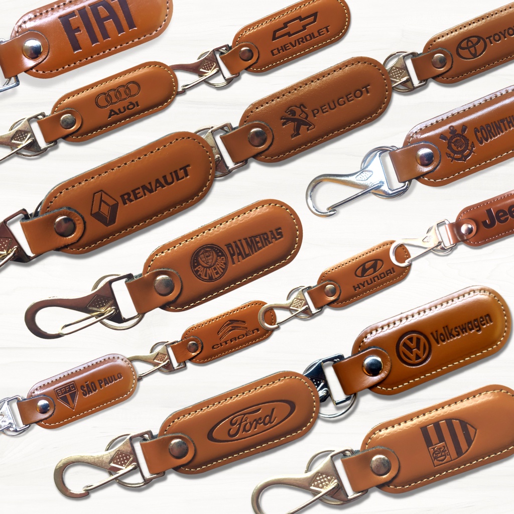 Chaveiro Couro Luxo com Gancho e Argola de Metal Automotivo Diversos Modelos
