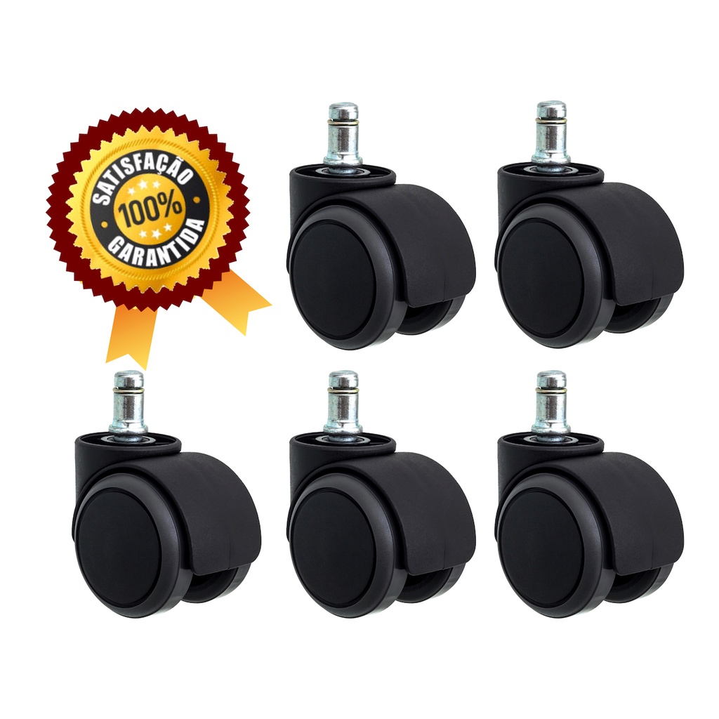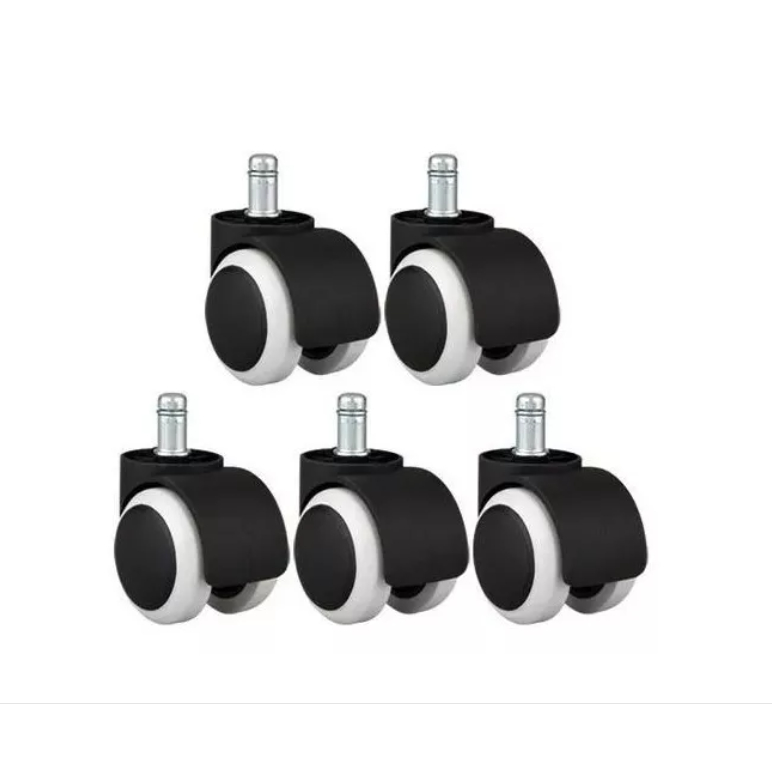Kit 5 Rodinhas Rodízio Universal Para Cadeira De Escritório Giratória Pu Anti Risco 50mm Preto Ultra Resistente 120 kg