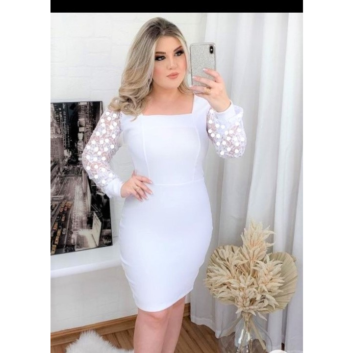 Vestido Branco De Festa Renda Floral Premium Casamento Civil Noivado