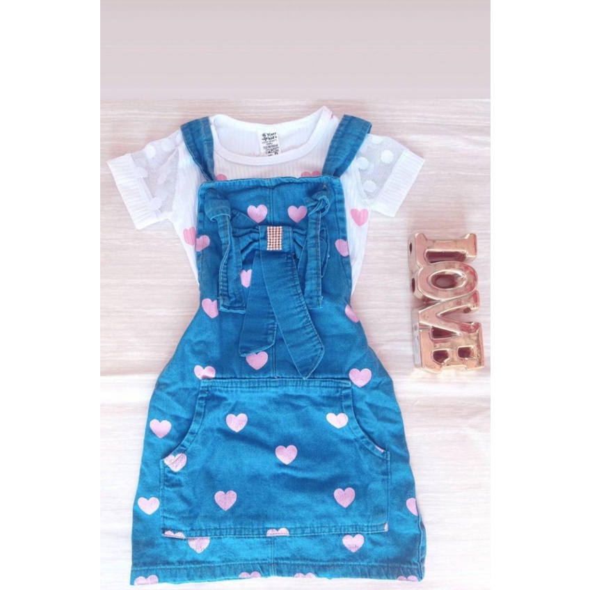 Conjunto infantil menina blogueirinha 2 peças Jardineira Saia Jeans