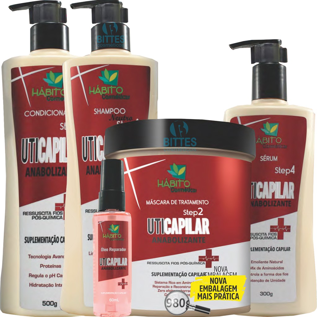 Kit UTI Capilar Hábito Cosméticos Tratamento com Queratina e ÓLEO REPARADOR DE PONTAS