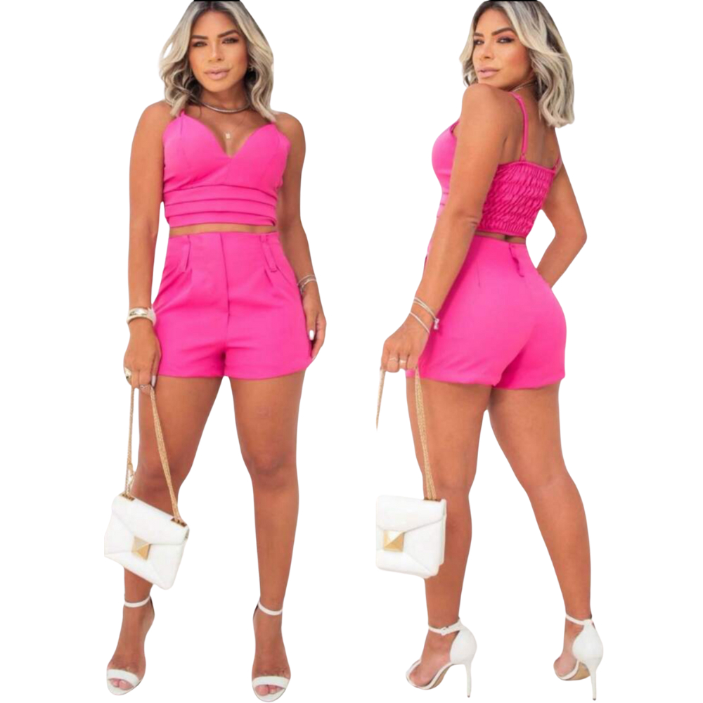 Conjunto Feminino Cropped e Shorts Alfaiataria moda