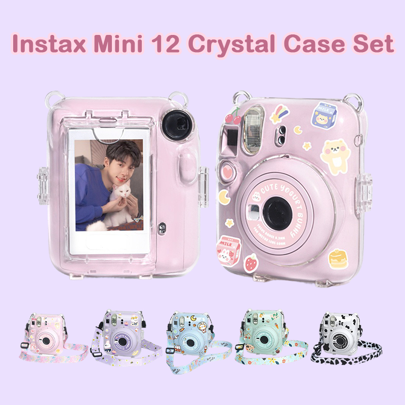 [Film Lab] Capa Capinha Transparente Instax Mini 12 Case Para Câmera Instantânea Capa Protetora Com Alça Com Adesivo CAA21
