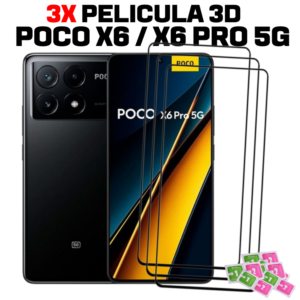 Kit 3 Película 3D Xiaomi Poco X6 / Poco X6 Pro Vidro Temperado Proteção Premium
