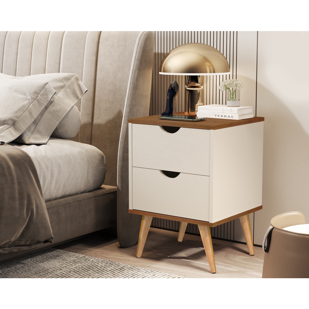 Mesa De Cabeceira Dream Criado Retrô Madri 2 Gavetas - Off White/Canela