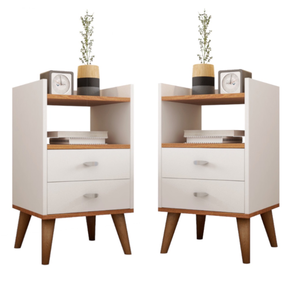 Mesa De Cabeceira Criado Pes Palito Madri Retro 2 Gavetas