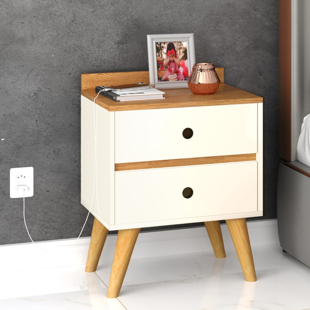 Mesa de Cabeceira Criado Retrô Juma 2 Gavetas Corrediça Telescópica Pés Antiumidade - Cores