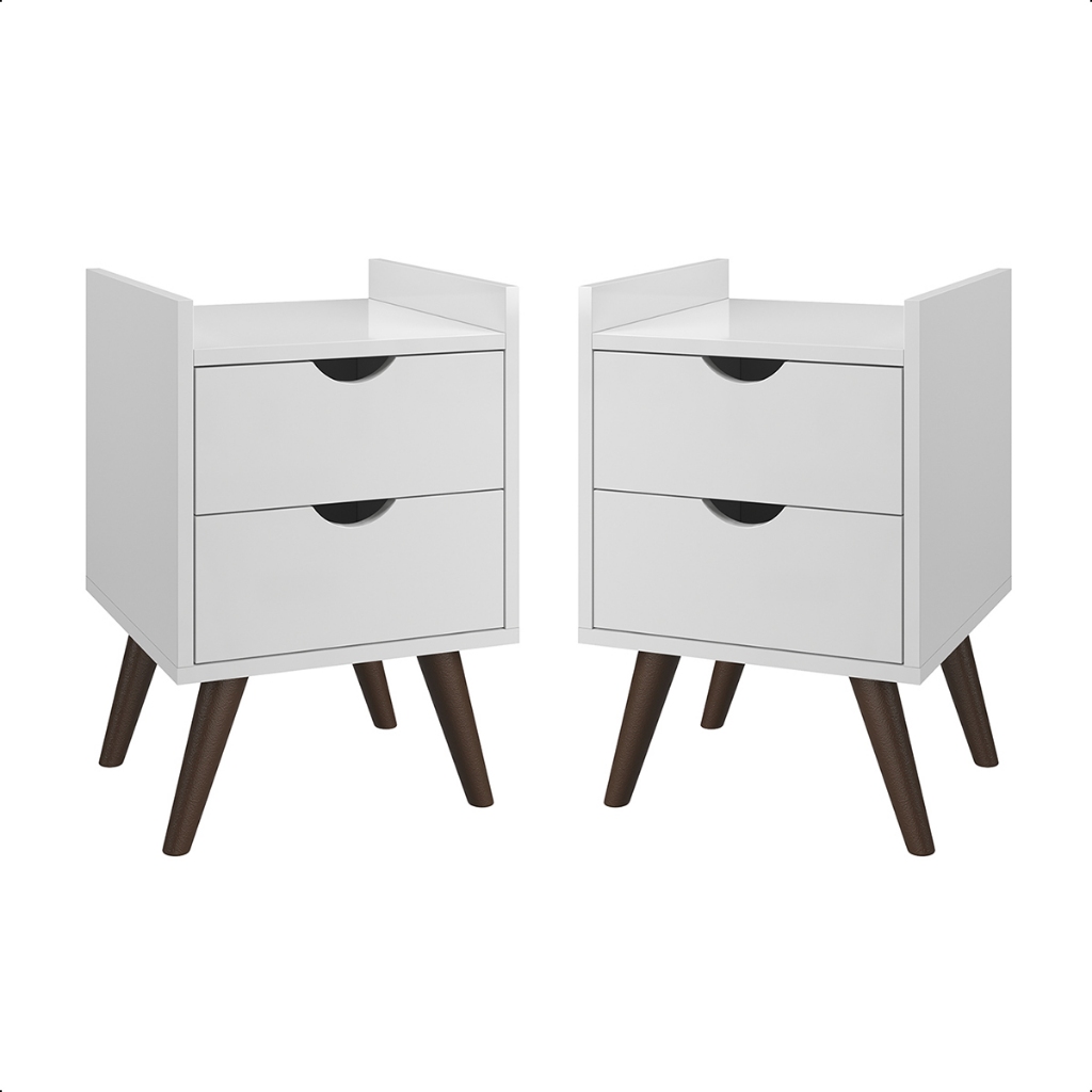 Mesa De Cabeceira Criado Pes Palito Madri Retro 2 Gavetas Madero